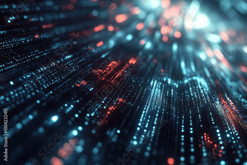 Dynamic visualization of flowing digital data streams in vibrant blue and red, creating an immersive tech-inspired atmosphere. Generative AI