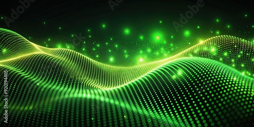 Dynamic wave background with glowing green dots, wave, background,rendering, dynamic, green, dots, abstract, digital
