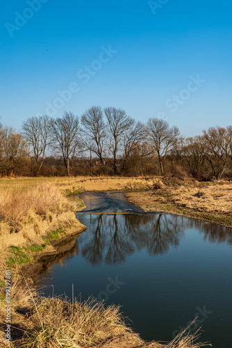 Early springtime CHKO Poodri with Odra river, meadows and trees