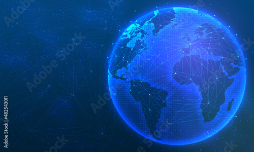 earth global network connection atlantic ocean deep blue background