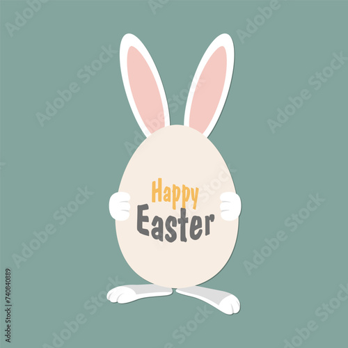 Easter Bunny. Ears Rabbit Vector. White Easter Bunny with egg and text: Happy Easter