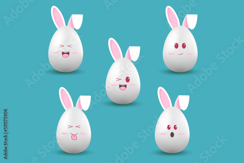 Easter Eggs Vector Illustrations, Kawaii Style