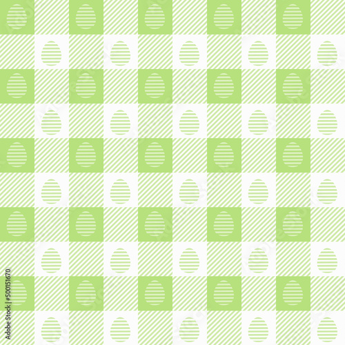 Easter gingham seamless pattern. Green vichy checkered background with eggs. Vector.