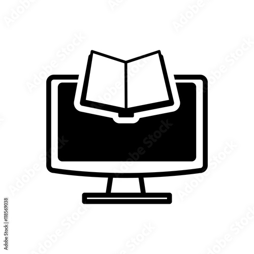 ebook book computer technology reading icon. Flat silhouette and isolated design. Vector illustration