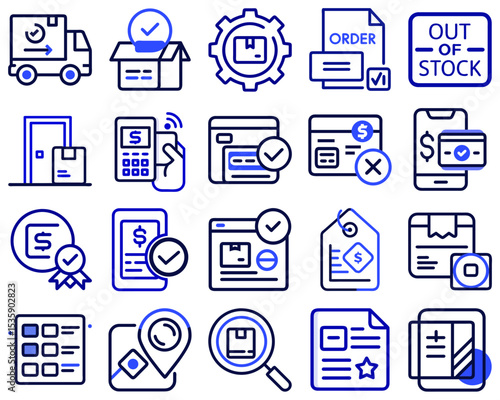 E-commerce and Customer Journey Icon Set Featuring Black Silhouettes