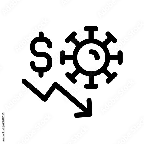 Economic crisis due to coronavirus pandemic, dollar currency decrease value cause by covid-19 worldwide outbreak, USD go down by recession vector icon