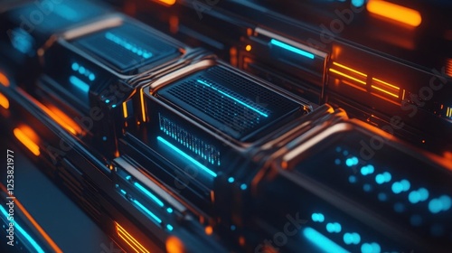 Edge Computing Network Visualization with Glowing Data Streams and Server Nodes in a Dark Tech Environment
