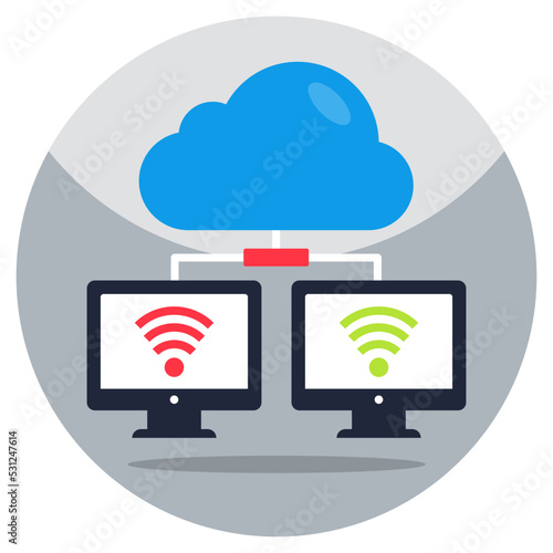 Editable design icon of cloud connected computer