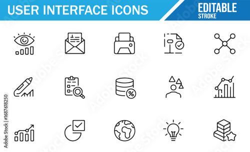 Editable Set of Web and App Design Icons Featuring Analytics and Tools