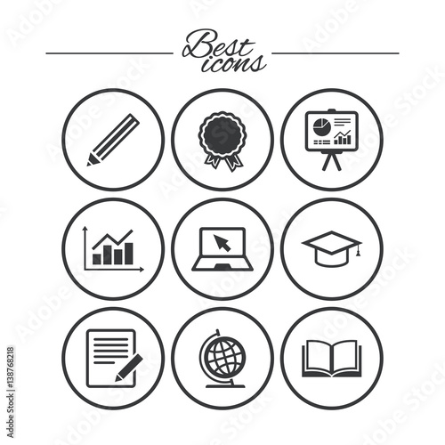 Education and study icon. Presentation signs.