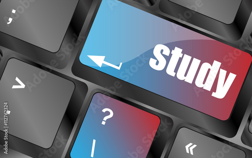 Education concept: computer keyboard with word study, selected focus on enter button background keyboard keys, keyboard button, keyboard icon