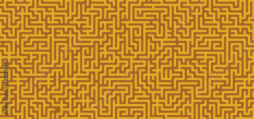 Education logic, labyrinth line. Orange, brown square maze. Vector. Find the way, labyrinth riddle. Black, white geometric pattern. labyrinth design icon. Maze tangled lines. Thinking game banner