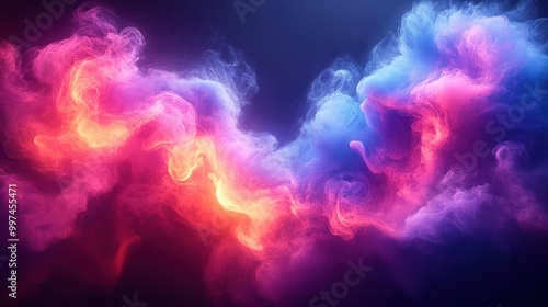 eerie illustration of swirling neon smoke predominantly in shades of purple and blue exploding outward from an empty center creating a dramatic effect that evokes mystery and intrigue