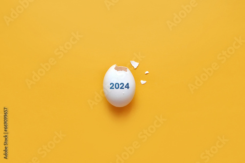 Eggshell and inscription: 2024. The symbol of the coming 2022. Postcard for the new year