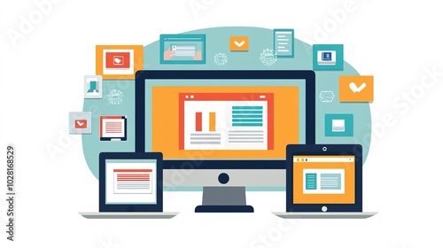 E-learning content being accessed on multiple devices, showcasing cross-platform compatibility.