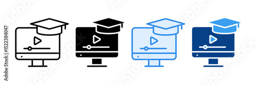 E-Learning Students Icon Set Multiple Style Collection