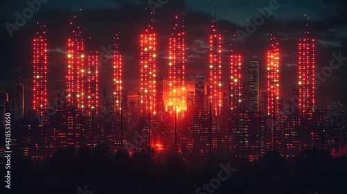 Electric Cityscape Glowing data streams light up the night sky above a futuristic metropolis