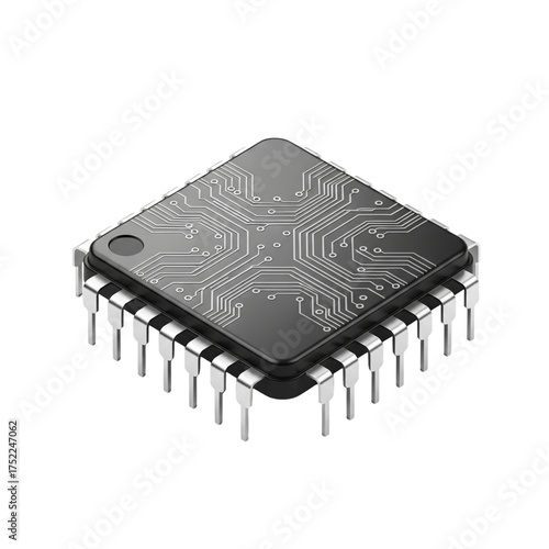Electronic Chip on Circuit Board Isolated on Transparent Background