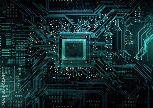 Electronic circuit board background, CPU chip on Motherboard, Generative AI