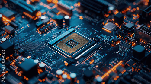 electronic circuit board blue tech background