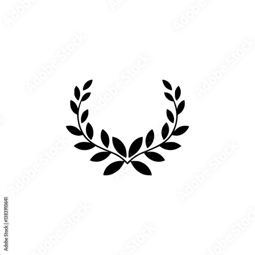 Elegant Black Laurel Wreath on White Background: Symbol of Victory, Achievement