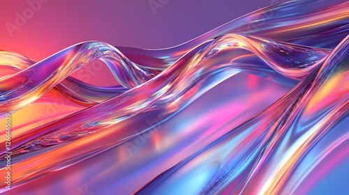 Elegant Flowing Holographic Glass Ribbons in Futuristic Abstract Background with Mesmerizing