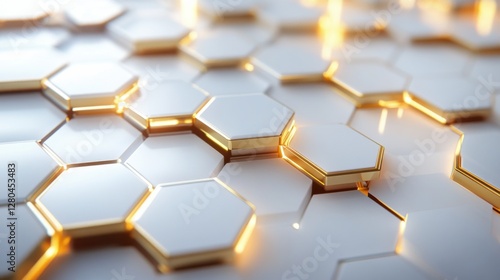 Elegant futuristic tech vector: Gold hexagonal patterns on white, abstract design