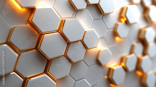Elegant futuristic tech vector: Gold hexagonal patterns on white, abstract design