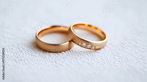 Elegant Gold Wedding Rings on Soft White Surface Symbolizing Marriage Bond and Commitment