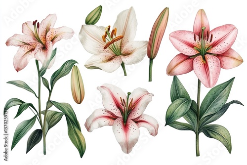 Elegant Lily Collection on a Pristine White Background