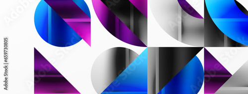 Elegant minimalist background with color metallic circles and triangles, creating harmonious composition of geometric shapes for wallpaper, banner, background, landing page
