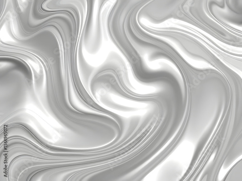 Elegant Silver Silk Fabric Texture, Liquid Smooth Swirls, Shiny Metallic Background, Luxury Design, Textile Art.