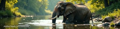 Elephant taking a bath in river , elephant, water, jungle