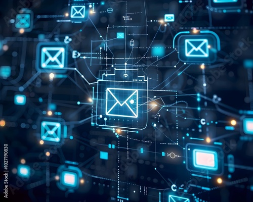 Email Icon Integrated into a Digital Network Symbolizing Omnipresent Modern Communication