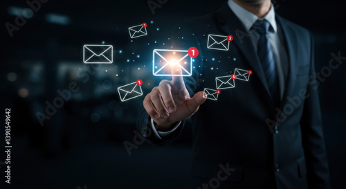Email Overload: Businessman Manages Inbox with Touch. Get Organized Now!