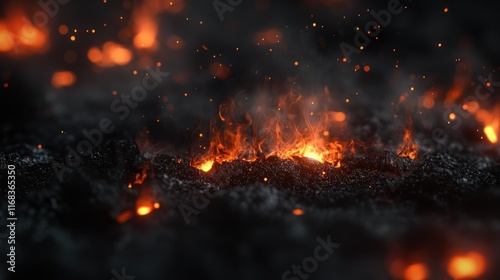Embers: A fiery spectacle of burning embers, smoke, and sparks.