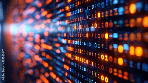Embracing the Digital Age: A Stunning Visual of Binary Code and Data Flow in a Bright Blue Environment