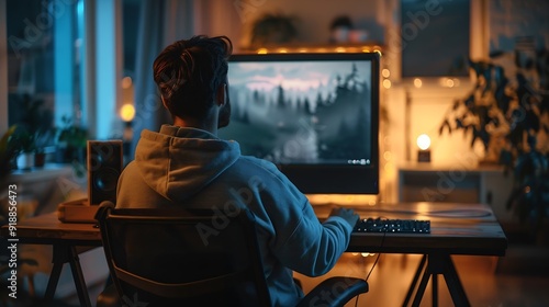 Employee Working On Desktop Computer In Home Office : Generative AI