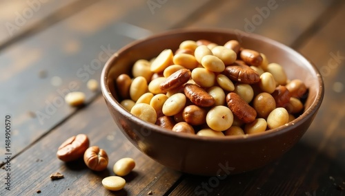 Empty bowl with scattered nuts, untouched meal , sunlight, strength