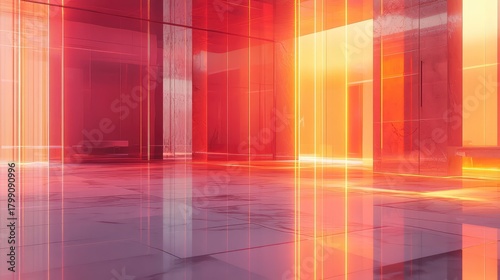 Empty futuristic interior with glowing orange neon lights