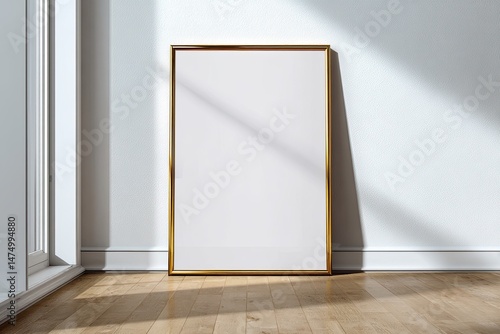 Empty gold framed canvas on light-filled room