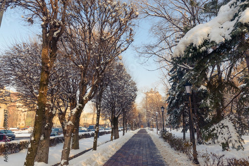 empty path in the park in winter
