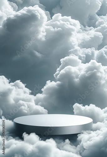 Empty silver platform on an ethereal cloud background, perfect for product presentation. Created with generative AI technology