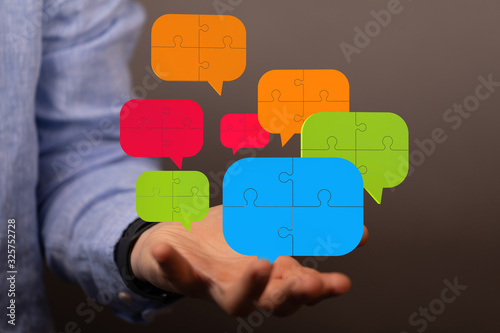Empty speech bubble hands feedback communication..