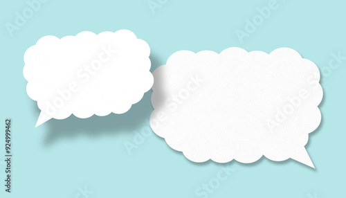Empty white cloud paper speech bubble shape against light blue background.