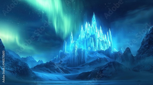 Enchanted Ice Castle Under Aurora Borealis