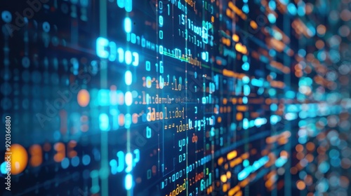 Encrypted data stream with binary code overlay, cybersecurity, data protection