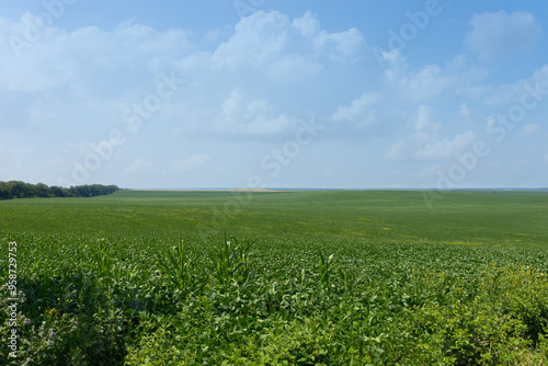 Endless green fields under a clear blue sky