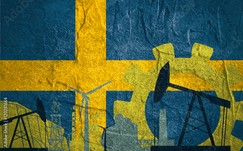 Energy and Power icons set with Sweden flag. Sustainable energy generation and heavy industry.
