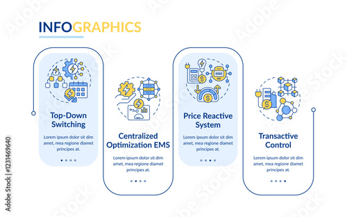 Energy management methods rectangle infographic vector. Bill calculation, finance. Data visualization with 4 steps. Editable rectangular options chart. Lato-Bold, Regular fonts used